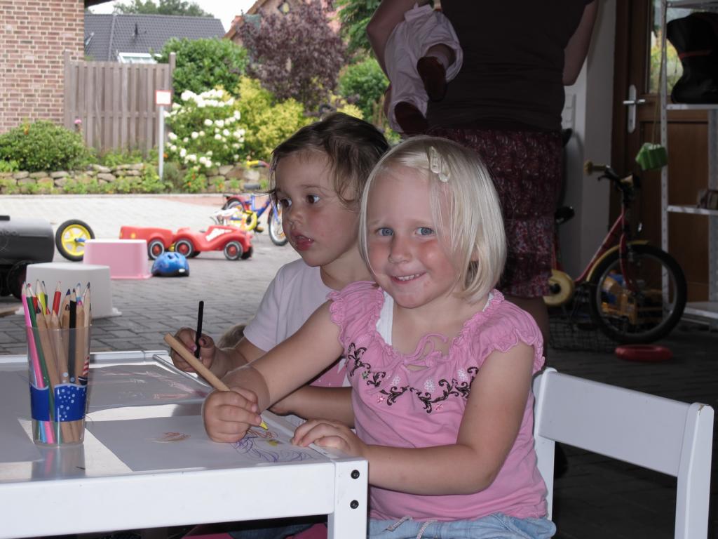 Anne und Janna vertrieben sich zunächst die Zeit mit Malen;