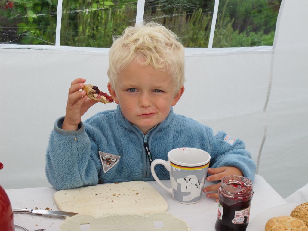 Natürlich gibt es beim Zelten immer die Fühaufsteher. Einer von ihnen war Janne. :-) Nachdem