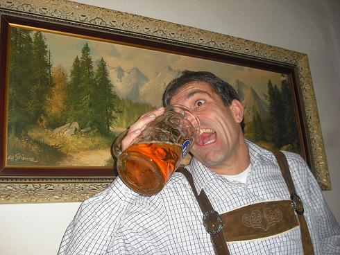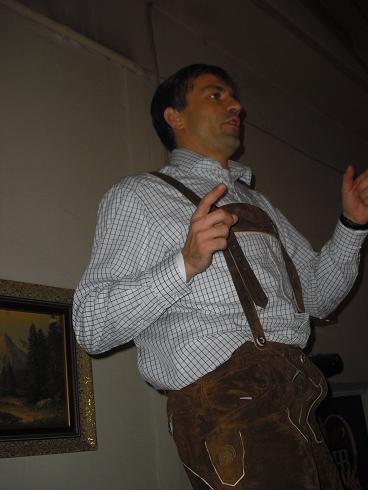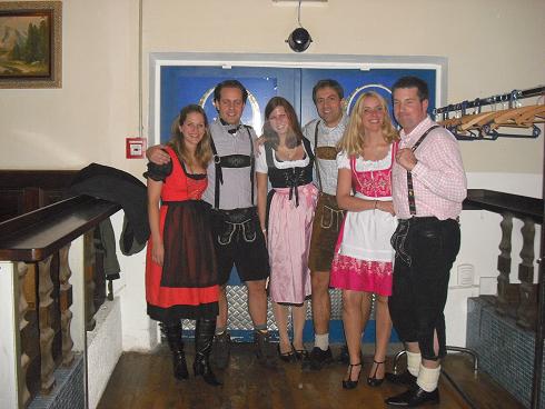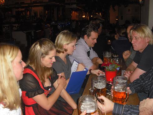 Somit wurde der 14.11. zu unserem Tag für das Oktoberfest erklärt. Es wurde ein Tisch für 12 Personen, natürlich in unmittelbarer Nähe zur Kapelle, man hatte ja aus dem letzten Jahr gelernt, gebucht und dem Gelage stand eigentlich nichts mehr im Wege. - Oder? - Ja ja, wer unsere Oktoberfestfeierlichkeiten mitverfolgt hat, dem wird aufgefallen sein, dass es da doch im letzten Jahr unter reichlich Alkoholeinfluss zur Unterzeichnung eines wagemutigen Vertrages gekommen war. Dort hieß es, siehe auch Bericht vom letzten Jahr, dass alle weiblichen Teilnehmer im Dirndl und alle männlichen Teilnehmer in Lederhosen zu erscheinen haben.
