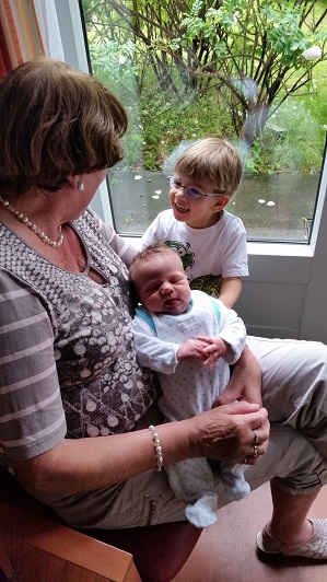 Ihr könnt mich und natürlich auch Mama und Papa und meinen großen Bruder gern jederzeit besuchen kommen. Inzwischen sind wir auch schon alle wieder zu Hause! Oma durfte mich direkt schon im Krankenhaus bewundern und mein großer, stolzer Bruder hat ihr gleich mal die wichtigsten Details zu meiner Person erklärt!