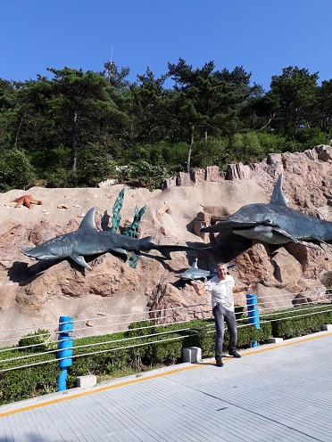 Blöd war, dass Papas Elternzeit leider wieder rum war und Papa wieder Arbeiten musste und dafür leider auch immer mal wieder länger und weit weg musste. Dann sind wir alleine mit Mama zu Oma und Opa gefahren. Aber Papa hat uns dann immer Bilder geschickt, zum Beispiel als er mal wieder in China war. Dieses Mal war er wieder 10 Tage unterwegs. So, waren wir dann auch ein ganzes Wochenende ohne ihn. Aber an dem Wochenende hat Papa in China auch nicht gearbeitet, sondern sich mal ein wenig die Hafenstadt Dalian angeschaut und dort ist er unter anderem einen Berg hoch gewandert, durch einen Park voller Fische, die in Stein gehauen waren. Also muss ja schon zugeben, da wäre ich gerne auch dabei gewesen.