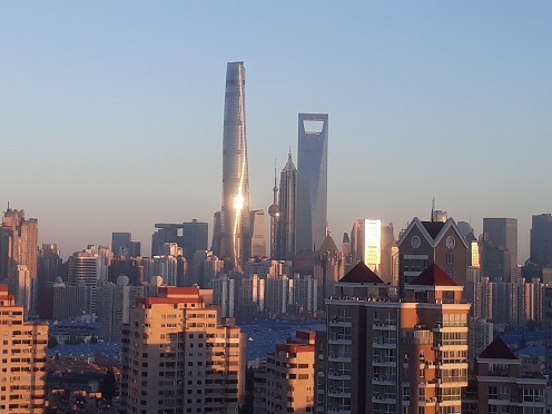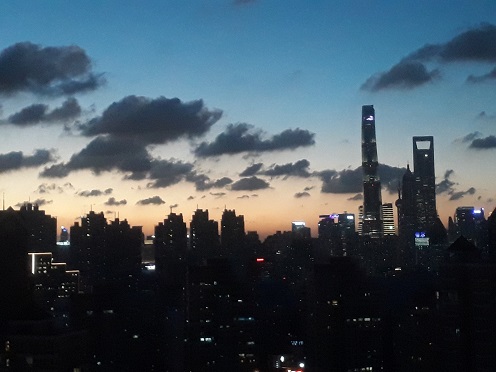Papa war auch wieder in Shanghai. Hier muss er dann wohl wirklich nur gearbeitet haben, denn er hat uns erzählt, dass er dort außer vom Hotel ins Büro bzw. dem Kunden und zurück nichts gemacht hat. Aber wenn man so einen Blick aus seinem Hotelzimmer über die Stadt hat, was soll man da auch noch vor die Tür gehen. Da genießt man einfach morgens, abends und nachts die Skyline aus dem Hotelzimmer.