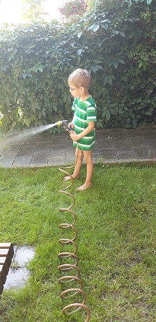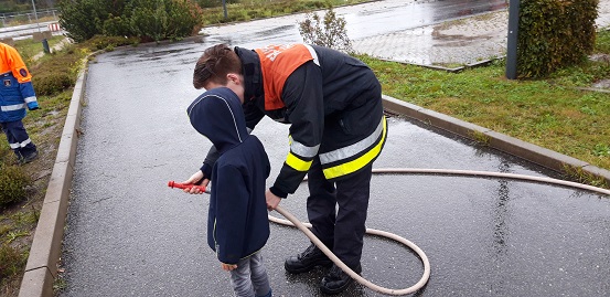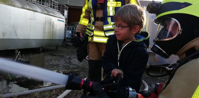 Leute, Leute, es ist in den letzten 3 Monaten wirklich schon wieder soviel passiert, dass wir hier nicht immer alles chronologisch vortragen können. Daher jetzt mal so ein kleiner spezieller Ritt durch diese drei Monate. Also, wer mich kennt, der weiß, ich liebe die Feuerwehr und ich liebe es Löschen zu spielen. Hey, aber immer nur im Haus zu spielen uns dabei "pschschschschsch" zu rufen, ist ja auf die Dauer langweilig. Hey, aber jetzt durfte ich ran, hab schön beim Nachbarn im Garten schon mal geübt, wie man einen Schlauch hält, um dann vernünftig spritzen zu dürfen. Dann durfte ich mit der richtigen Feuerwehr schon mal meine erlernten Fähigkeiten mit einem kleineren Schlauch unter Beweis stellen, bevor ich dann bei einer echten Feuerwehrübung bei Opa auf dem Hof, sogar das C-Rohr halten durfte!!! Wow - Leute, das war so geiiiiillllll!