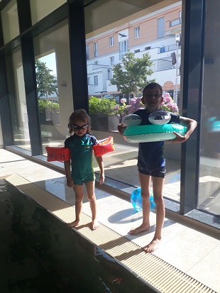 Ach und jetzt hätten wir es doch glatt fast vergessen, das worauf wir uns jeden Tag am meisten gefreut haben, war unsere Stunde im Hotelpool. Das macht so einen Spaß und ich bin immer und immer wieder reingesprungen und ich hatte sogar meine Taucherbrille mitgenommen, da konnte ich immer tauchen und den Knopf für das Sprudelwasser, der nämlich unter Wasser war, immer wieder andrücken!