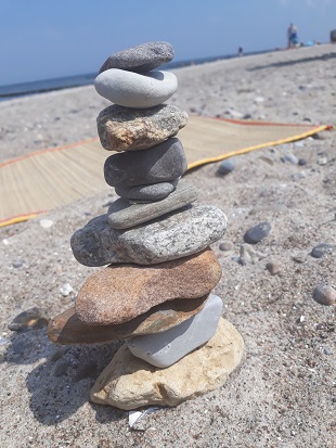 Hihihi, ja das war lustig, eigentlich hatte Papa diesen Luftkissensack ja für sich mitgenommen, damit er nicht immer vor dem Strandkorb im Sand liegen muss. Was soll ich sagen, da wir den Luftkissensack vereinnahmt hatten, konnte Papa wieder im Sand Steinetürme bauen und das bis zum Sonnenuntergang;-) Übrigens, wenn Papa dann mal nicht hingeschaut hat, haben wir die Steine von Papas Steintürme schnell ins Meer geworfen;-) Papa hat sich immer gewundert, wo die Steineklaugeister nur her kommen.