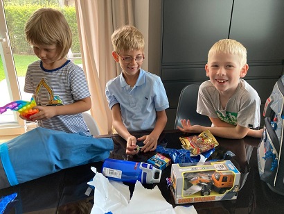 Endlich zu Hause und endlich Auspacken. Bohhhh auch mein Cousin und mein kleiner Bruder haben Bauklötze gestaunt, was so alles in eine Schultüte reinpasst - einfach Wahnsinn. Klar, waren viele Sachen drin, die auch für die Schule nützlich sind, Stifte, Trinkflasche usw., aber es gab auch jede Menge Spielsachen.
