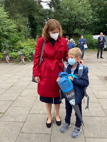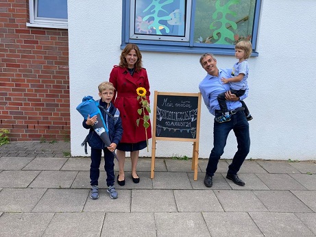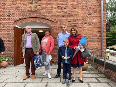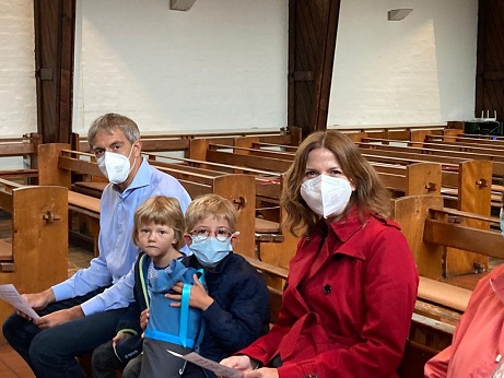 War dann in der Kirche irgendwie komisch. Sollte es so sein, dass nur ich in die Schule komme? Zwei Schulen sollten hier zur ökonomischen Andacht den Schulstart einläuten. Ok, ihr seht es ja schon an den Masken, alles mal wieder unter dem Corona-Hygienekonzept und so gab es auch insgesamt drei dieser Andachten. Trotzdem waren wir ein wenig verwundert, dass gerade mal 3 Familien letztendlich zu dieser Andacht kamen. Aber hey, wie auch immer, wir fanden es schön und nun freuten wir uns alle auf die Schule.