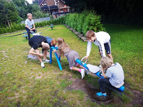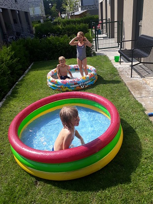 Also noch waren erstmal Ferien und das möchte ich jetzt nicht unterschlagen, denn auch nach unserem Urlaub und bevor es mit der Schule los ging, haben wir ja eine Menge toller Sachen gemacht. Logisch, es war ja noch Sommer und somit ging das mit dem Planschen einfach bei uns zu Hause weiter. Dann war ich mit meinem Kumpel bei einer Miniatureisenbahn-Ausstellung, das war auch echt cool und ich habe endlich mal wieder die Zeit gefunden, meinen alten Kindergartenkumpel Janne zu treffen. Ok, er hat das falsche Trikot an, aber hey, das hab ich dieses Mal noch durchgehen lassen;-)