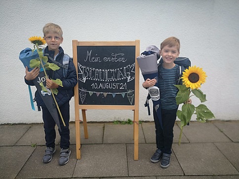 Man, logisch habe ich mich auf die Schule gefreut, aber ein bisschen mulmig war mir dann doch schon zu Mute. Hey, schon ein großer Schritt, vorbei die Kita-Vorschulzeit und ab in die Schule, da darf man ja wohl auch ein wenig nervös sein, oder? Nur gut, dass ich nicht alleine in die Schule kam, viele von meinen Nachbarn kamen auch zur Schule und wir wurden supertoll von allen unterstützt und alle haben sich mit uns gefreut!!!