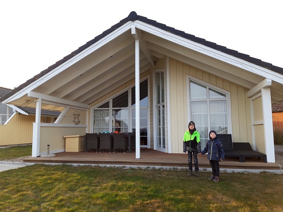 Nun aber endlich zu unserem schon in der Überschrift angekündigtem Urlaub bei Bauer Martin - neee echt kein Scherz, der heißt wirklich so. Da hat dann jeder sein eigenes nettes Häuschen, wo alles drin ist, was das Herz begehrt. Eine Badewanne, die als kleiner Whirlpool ausgelegt ist, eine kleine Sauna und sogar Betten für 6 Personen, ergo reichlich Platz um auch zu spielen. Die Terasse konnten wir jetzt noch nicht wirklich nutzen, dafür war es dann Anfang März doch noch ein wenig zu frisch.