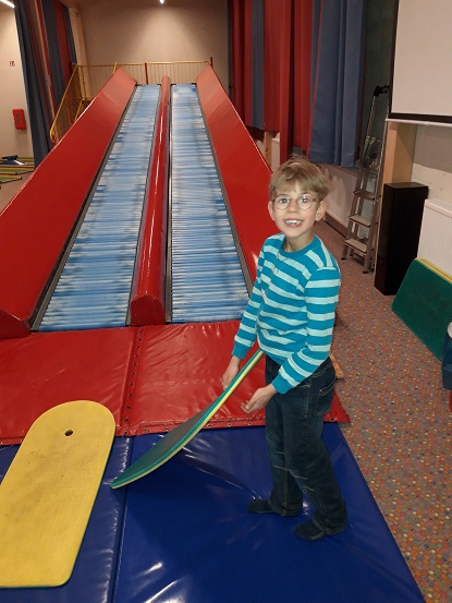 Das tolle ist ja, dass man völlig unabhängig vom Wetter dort Spaß haben kann. Die haben da eine tolle Scheune mit super Spielmöglichkeiten. Ob eine Rollenrutsche, oder eine kleine Indoor Minigolfanlage oder auch ein riesen Kletterhaus mit integrierten Rutschen und Bällebädern, alles drinnen und da kann dann draußen auch ruhig mal das Wetter nicht so schön sein.