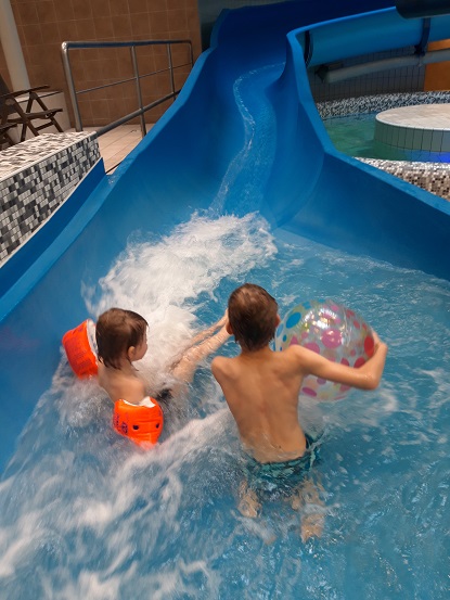 Klar, wenn man schon mal da ist, dann sind wir natürlich auch an die Ostsee gegangen, aber zum Baden in der Ostsee war es definitiv viel zu kalt. So haben wir es beim Steine werfen belassen. Zum Baden sind wir dann lieber in ein großes Schwimmbad in der Nähe gefahren, da gab es eine voll lange, tolle Tunnelrutsche. Ich kann euch nicht sagen, wie oft wir da runter sind, aber mir tat nachher auf alle Fälle vom ganzen Rutschen der Popo weh.