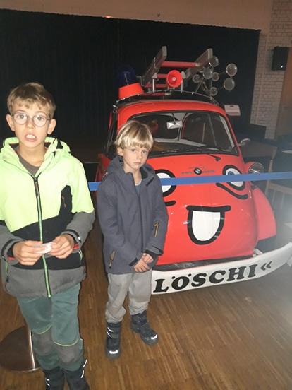 Wir mussten uns ja eh irgendwie die Zeit vertreiben, denn wir hatten es ja schon gesagt, es ist die Jahreszeit des großen Wartens. Nach meinem Geburtstag beginnt halt das Warten auf Weihnachten, oder zumindest das Warten auf den 1. Dezember, damit wir endlich das erste Türchen öffnen können. Papa hat echt alles versucht, um uns das Warten zu verkürzen, er ist mit uns dann auch zum Martinsumzug der freiwilligen Feuerwehr Schnelsen gefahren. Er hatte alles eingepackt, Laternen sogar unsere Laserschwerter hatte er dabei. Aber jetzt mal ehrlich, so ein Laternenumzug ist nun wirklich nur was für Babys - finden auf alle Fälle mein Bruder und ich. Ok, wir haben dann noch schnell ein Bild mit Löschi gemacht, aber noch bevor der eigentlich Umzug gestartet ist, sind wir schon wieder weg und die Laternen und Laserschwerter haben wir Papa erst gar nicht aus dem Auto holen lassen.