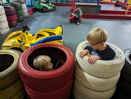 Großartig Zeit um all die Geschenke zu bewundern blieb aber gar nicht, denn die eigentliche Party sollte in der Fun Arena starten. Mama und Papa hatten sich bei den Nachbarn extra die großen Autos geliehen, damit wir auch alle mitnehmen konnten. Klar durfte auch mein kleiner Bruder mit, der ist ja auch eigentlich sowas wie mein bester Freund. Die Fun Arena ist wirklich riesig und ich kann euch gar nicht erzählen, was man da alles machen kann. Nur so viel, wir hatten alle jede Menge Spaß.