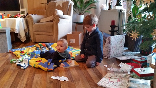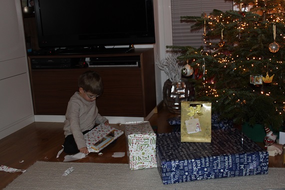 Man, man, man, Weihnachten ist ganz schön aufregend. Am nächsten Tag sind wir dann weiter zu Oma und Opa und hey, ich konnte es ja kaum glauben, aber da ging es gleich weiter. Ich meine klar, Joris hatte mir schon erzählt, dass das Christkind wohl auch bei Oma und Opa war. Aber jetzt mal ehrlich, wer glaubt denn so was, wenn man es noch nie erlebt hat? Aber es stimmte und da war das Christkind nicht nur für uns noch mal gekommen, sondern für alle anderen auch. Also Hammer, echt alles ein wenig viel für mich, ich habe mir dann dieses Mal noch den ganzen Trubel lieber aus sicherer Entfernung angeschaut.