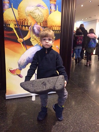 Irgendwie muss man sich ja dann die Wartezeit vertreiben und ich glaube auch Mama und Papa mögen diese Zeit. Wir treffen uns dann zum Beispiel mit Lene und Jonas und ihren Eltern auf dem Weihnachtsmarkt. Da trinken die Erwachsenen dann irgend son komisch riechendes heißes Zeug und wir Kinder dürfen dann immer Karussell fahren, oder wir spielen da dann an den Buden, die dann in der Stadt aufgebaut sind. Mit Lene war ich dann auch beim Weihnachtsmärchen im Ohnsorg Theater. Es gab dieses Jahr die Geschichte vom kleinen Muck. Aber ich sag euch was, der kleine Muck, der hat aber ganz schön große Schuhe - schaut mal her!!