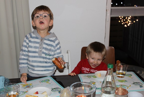 Natürlich hatten wir auch wieder in der Weihnachtszeit viel Besuch, wenn dann andere Kinder kommen, dann verfliegt die zeit natürlich und ich sag euch, Joris und Nicola haben nur Blödsinn beim Essen gemacht, da musste ich auch ganz viel lachen;-))) Joris macht eh immer viel Blödsinn und bringt mich damit immer zum Lachen!