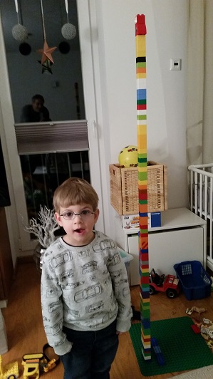Was soll ich sagen, irgendwann wurde ich wach und alle wünschten mir ein frohes neues Jahr. Na, kannte ich ja auch noch nicht, weiß jetzt auch nicht, was jetzt anders ist, aber mal abwarten. Also mein Bruder baut weiter Duplotürme, ok, die werden immer größer. Ich bin weiter am liebsten auf Papas Armen, ok, der erste Ritt in neuem Jahr auf Onkel Kays Knien, der hat auf alle Fälle auch schon mal tierisch Spaß gemacht, seitdem bin ich mir echt nicht mehr so sicher, ob der schönste Platz wirklich auf Papas Armen ist.
