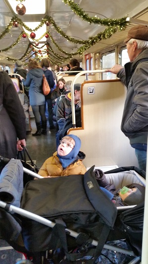Hey, so, jetzt will ich aber auch mal wieder was erzählen, ich mag ja noch ziemlich klein sein und kann auch noch nicht laufen, aber ich habe auch schon gemerkt, dass diese Zeit wohl besonders ist. So sind wir mit einer ganz alten S-Bahn mitgefahren und die war total schön geschmückt. Tja, die hatte auch mein großer Bruder noch nicht gesehen und auch Papa hat gesagt, er wäre da zum ersten Mal mitgefahren. Die war auf alle Fälle von außen und von innen total weihnachtlich geschmückt und man konnte da ganz normal mitfahren hat der Papa gesagt. Mein großer Bruder und ich wir verstehen uns übrigens super. Joris klettert ganz häufig zu mir in den Laufstall und dann schmusen wir;-)