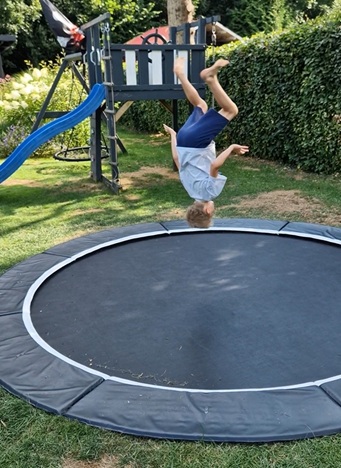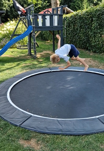 Aber solche Techniken wollen gepflegt sein, heißt, man muss sie immer wieder üben. Ich wollte dann eigentlich im Feriencamp meine Technik verbessern, denn an einem Vormittag stand auch Trampolinspringen auf dem Programm. Ich habe aber genau einen Backflip machen dürfen, danach durfte ich es nicht mehr und auch im Jumphouse, wo Papa dann Anfang der Ferien mit uns hin ist, sind Backflips leider verboten;-( Ich hoffe nur, ich bekomme irgendwo demnächst nochmal die Chance weiter zu üben.