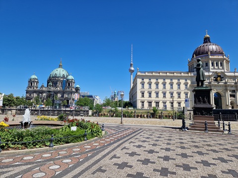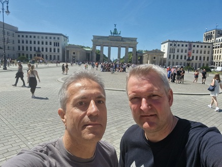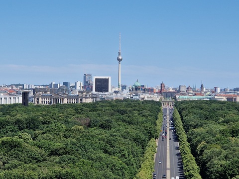 Papa hat bei dem traumhaften Wetter mit seinem Kumpel ein paar Tage in Berlin verbracht. Logisch, dass die zwei auch Grüße in die alte Heimat geschickt haben. Die treuen Leser werden das Elefantenbein, vom roten Elefanten, der in Berlin vor der Vertretung Niedersachsens steht, sicherlich auch wiedererkannt haben, der taucht auf diesen Seiten hier nicht zum ersten Mal auf. Aber Papa hat es zum ersten Mal geschafft die Siegessäule zu erklimmen. Die 285 Stufen sind schon nicht ohne, gerade bei über 30°C, aber dafür hat man dann, oben endlich angekommen, einen traumhaften Blick auf Berlin. Bei dem Wetter ist Berlin eh ein Traum.