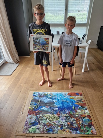 Tja nur leider war der erste Anlauf vom Sommer, wie wir es oben beschrieben haben, nur von kurzer Dauer. Die letzten Schultage und zu Anfang der Ferien hat es eigentlich immer nur geregnet. Der Juli 2025 war allgemein in Deutschland viel zu nass, 40% mehr Regen als üblich und Hamburg war auch noch die regnerischste Gegend in Deutschland für Juli. Somit muss man sich Sachen einfallen lassen, die man im Haus machen kann. Mein kleiner Bruder hat mal all seine Pokémon Karten neu sortiert und gezählt und ich habe mein erstes 2000er Puzzle geschafft.