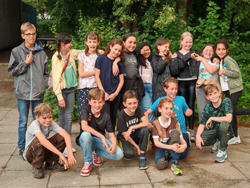 Am letzten Freitag vor den Ferien hatten ein paar von den Eltern für unsere Klasse eine gemeinsame Übernachtung in der Turnhalle organisiert. Mama hatte unter anderen dafür gesorgt, dass wir auch alle was zu essen bekommen und Papa hatte für abends noch eine Schnitzeljagd im Niendorfer Gehege organisiert. Er war dann auch einer von den Eltern, die mit uns in der Turnhalle übernachtet haben. Es hat allen super viel Spaß gemacht und zum Schluss gab es dann noch ein Abschlussfoto mit allen die beim Übernachten dabei waren. Die Woche drauf gab es dann noch die offizielle Verabschiedungsparty in der Schule, dort waren dann auch nochmal alle Lehrer und Bertreuer dabei.