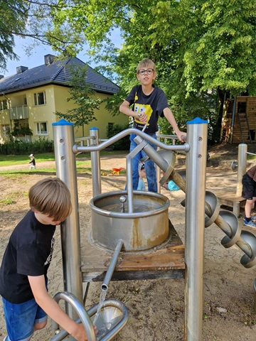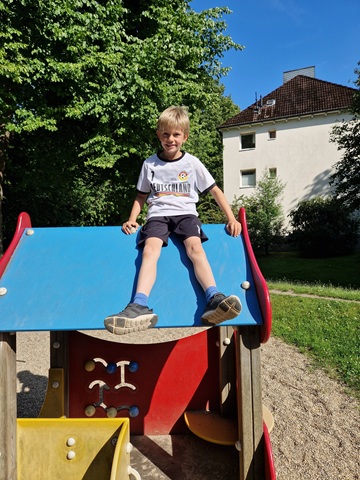 Wenn denn dann die Sonne scheint, sind wir fast nur draußen. Doch sind wir nicht nur bei uns direkt vor dem Haus unterwegs. Wir machen dann mit unseren Freunden auch gerne diverse Spielplätze in der näheren Umgebung unsicher. Auf den meisten gibt es auch eine Wasserbahn, tja und wo Wasser ist, da sind wir ja nicht fern wie ihr sicherlich alle schon wisst.