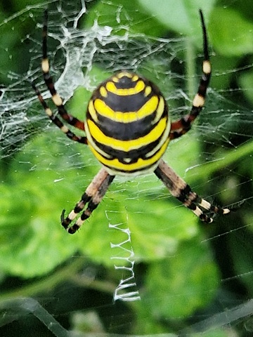 Und gemeinsam hoffen wir, dass der Sommer nochmal zurück kommt. Was aber natürlich stimmt, viel Regen und Sonne, da blüht die Natur so richtig auf. Das sieht man dann auch bei uns im Garten und da es letztendlich im Schnitt halt doch hier wärmer wird, kann man inzwischen auch hier Insekten wie die Wespenspinne (auch Tigerspinne genannt) bewundern, die mein Freund und ich letztens beim Brombeersammeln im Niendorfer Gehege entdeckt haben. Die Weibchen sind hier deutlich größer als die Männchen und weisen die namensgebende Zeichnung des Corpus auf - ergo wir sehen hier ein prachtvolles Weibchen.