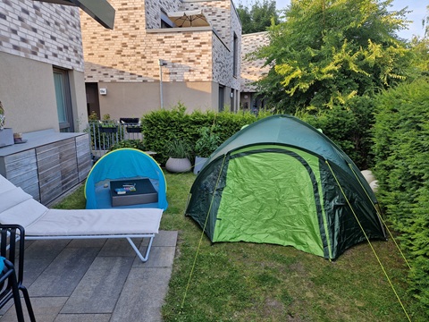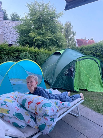 Da es selbst nachts nicht so weit runtergekühlt ist, bot sich uns auch die perfekte Gelegenheit endlich mal unser Zelt auszuprobieren. Wir hatten ja noch nie gezeltet, obwohl das Zelt schon seit 2 Jahren im Keller liegt. Mein kleiner Bruder war sich erst nicht so sicher, wo er schlafen sollte. Er ist dann später, als es dann doch etwas kühler wurde, ins Haus und hat den Rest der Nacht dort verbracht. Ich habe aber mit Papa bis zum nächsten Morgen um 8 Uhr im Zelt geschlafen.
