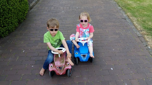 Für regelmäßige Leser dieser Seite ist es dann auch sicherlich keine Überraschung, dass wir natürlich auch zwischendurch wieder unsere Großeltern besucht haben. Hey und was soll ich euch sagen, auch das macht bei gutem Wetter noch mehr spaß als sonst schon, ich konnte so zum ersten Mal Oma Margrets Garten erkunden. Auch meinem großen Bruder macht es viel mehr Spaß dann zum Beispiel mit Johanna draußen rum zu spielen. Na, ob man dann aber gleich einen auf so cool machen muss. Also Leute, was soll ich euch sagen, ich glaube der Joris möchte die Johanna schon beeindrucken und hat dann seine coole Sonnenbrille rausgeholt, aber Johanna stand ihm ja in nix nach;-)