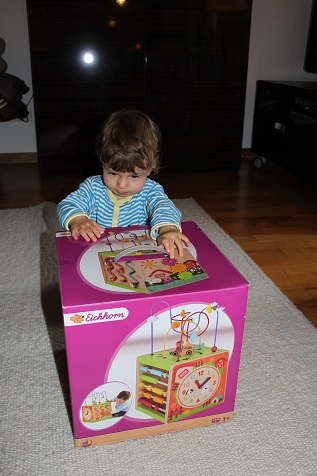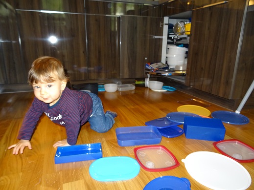 Na, aber eigentlich will ich euch ja von meinem ersten Geburtstag erzählen. Also man hat mir immer erzählt, da gibt es viele Geschenke und dass die Eltern die Geschenke oft vorher schon irgendwo verstecken. Tja, so bin ich dann eigentlich direkt nach dem Urlaub damit angefangen, immer mal schön die Schränke auszuräumen und nach Geschenken zu suchen und wenn man mich dann mal wieder im Laufstall "eingesperrt" hatte, habe ich angestrengt drüber nachgedacht, wo ich denn wohl als nächstes suchen könnte.
