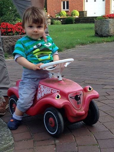 Tja, so viel frische Luft und immer das Rumtoben mit Papa, das macht dann echt ab und an ziemlich müde, aber Gott sei Dank kann ich wirklich in jeder Stellung und überall gut schlafen;-) Wir besuchen hier in Hamburg auch viele Freunde, meine Freundin Frieda wohnt praktisch um die Ecke und die hat echt nen super Trecker mit Tieren drauf. Die meisten kenne ich schon von Opas Bauerhof.