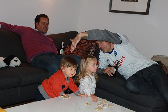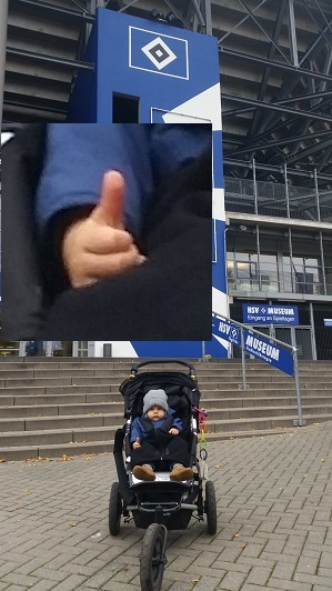 Oder Freunde kommen zu uns, so war dann auch Lene mal wieder bei mir zu Besuch. Aber ich hatte irgendwie das Gefühl, dass hier eigentlich die Väter der Hauptanlass für unser Treffen waren. Irgendwie waren die wohl vorher beim HSV. HSV immer wieder HSV, Leute kurz vor meinem 1. Geburtstag hat dann der Papa mich auch beim HSV angemeldet. Seitdem gilt natürlich auch für mich nur noch "Daumen hoch für den HSV".