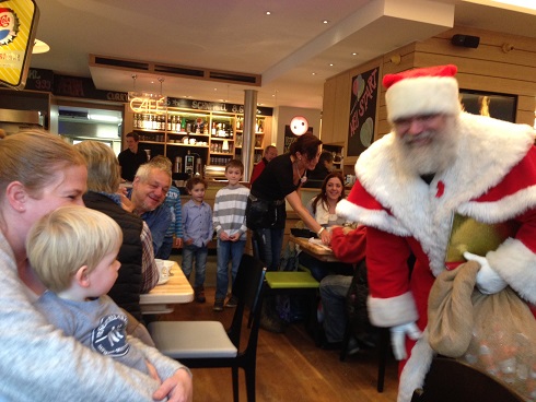 Am nächsten Morgen waren wir dann mit alle Mann frühstücken und Leute, ihr glaubt es nicht, da habe ich dann doch tatsächlich den Nikolaus getroffen, der war wohl noch immer auf seiner Runde. Hey, kein Wunder, wo der überall hin muss und es wollen ja alle Kinder was haben. Wir haben dann für den Nikolaus noch mal ein Liedchen gesungen und dann haben wir alle noch mal was aus seinem Sack bekommen;-))