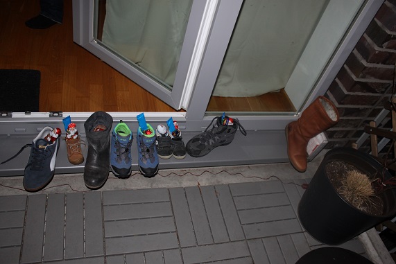 Als dann alle Abends wieder zu Hause waren, haben wir die Schuhe rausgestellt und was soll ich euch sagen, tatsächlich waren alle Schuhe am nächsten Morgen gefüllt!!! Hey und nicht nur die Schuhe, ich hatte auch noch ein Paket und da war mein erster richtiger Trecker drin und der kann sogar von alleine fahren - HAMMER!!!