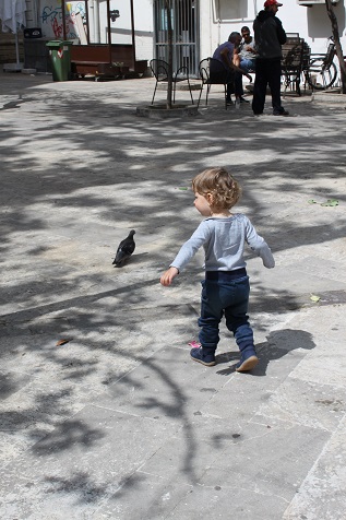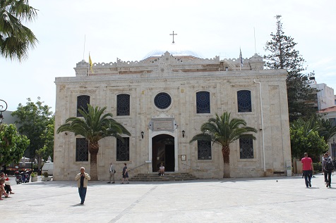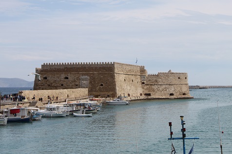 Iraklion ist die größte Stadt auf Kreta und hier leben ca. 200.000 Menschen. Logisch, dass man an einem Vormittag nicht mal eben die ganze Stadt besichtigen kann. Gerade, wenn man sich erstmal orientieren muss, wo man denn überhaupt ist, wenn man am zentralen Busstop rausgelassen wird. Na, aber schnell war klar, dass wir uns praktisch direkt am Hafen befanden. Einfach ein Stück durch die alten venezianischen Arsenale und schon liegt einem die Festung Koules (im Bild) praktisch direkt vor der Nase. Von dort gelangt man dann auch direkt in die zentrale Fußgängerzone. Diese einfach ein Stück hoch schieben und schon kommt man an der venezianischen Loggia, das heutige Rathaus vorbei, hinter der man die Agios-Titos-Kirche findet (im Bild). Aber was soll ich euch sagen, spätestens da war es mir zu blöd, einfach im Buggy zu sitzen. Ich wollte mich bewegen!!! Also raus und Tauben jagen, hossa, ganz großer Spaß;-)