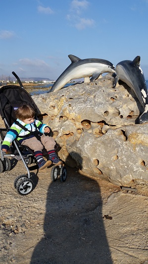 Ansonsten war es wie gehabt, wenn ich schon mal im Urlaub bin, dann will ich nicht den ganzen Tag verschlafen. Wir kennen es ja schon vom Mallorca Urlaub im letzten Jahr. Ich mache solange Terror, bis Papa sich erbarmt und mit mir die Gegend erkundet. Wir schieben dann einfach willkürlich los, mal in die eine, mal in die andere Richtung. So haben wir auch letztendlich die kleine Kirche gefunden in die morgens die Sonne so herrlich durch den Glockenturm strahlt. Aber es kommt halt auch schon mal vor, dass die Straße einfach aufhört und es nicht weitergeht. In der Regel sind wir so Morgens immer ne gute Stunde durch die Gegend geschoben!