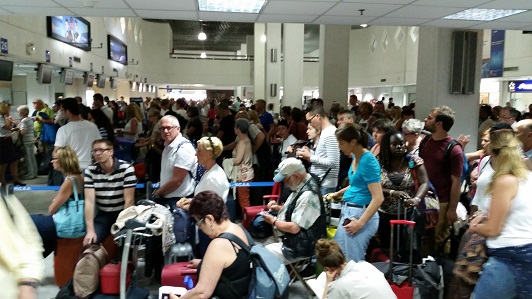 Tja und so ist dann leider auch dieser Urlaub schon wieder viel zu schnell rum gegangen und es hieß für uns Koffer packen und wieder zurück nach HH. Am Flughafen in Iraklion dann die mega Schlange am Check-In Schalter. Da hat es sich dann mal wieder ausgezahlt, dass Papa doch ein wenig Flugerfahrung hat. Er hat Mama und mich einfach schon mal am Nachbarschalter anstellen lassen, der eigentlich für nen anderen Flug gedacht war, aber ne ziemlich kurze Schlange hatte. Es dauerte dann auch keine 10 Minuten, bis das Flughafenpersonal auch auf den Trichter gekommen war, besser auch diesen Schalter für den Flug nach Hamburg zu nutzen und schwupps waren Mama und ich die ersten am Schalter;-) Ok, ok, haben uns ein wenig den Unmut einiger anderer Reisenden zugezogen, aber hallo, hätten sich ja auch da anstellen können. So konnte ich dann entspannt noch meine Flasche Wasser leer machen, bevor der Sicherheits-Check anstand.