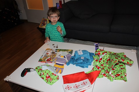 So, nun aber erst mal zum Abschluss von 2016, nachdem ich dann meinen 2. Geburtstag feiern durfte ist ja noch ne Menge passiert, schließlich stand ja noch die ganze Weihnachtszeit vor der Tür. Leute, Leute, die Weihnachtszeit ist ja echt was cooles, ist ja rein theoretisch schon das dritte Mal, dass ich das alles mitbekommen, aber ich weiß auch nicht warum, irgendwie muss die in den letzten 2 Jahren an mir vorbeigegangen sein, zumindest die Vorbereitung. Vielleicht habe ich den Nikolaus beim letzten Mal ja auch nicht so wahr genommen, weil noch soviel anderes an dem Tag los war, da waren ja meine Cousins auch in Hamburg und wir hatten die Stiefel extra rausgestellt. Dieses Mal war ich ganz alleine mit Mama, Papa war leider mal wieder unterwegs. Aber hey, der Nikolaus ist trotzdem gekommen und hat auch für Papa was da gelassen. Aber ich sag euch, mein Stiefel hing an der Tür und war gerappelt voll. Da muss ich wohl ein verdammt lieber Junge gewesen sein;-)))