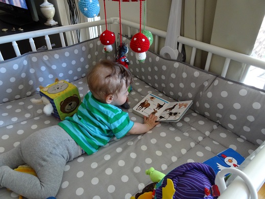 Ich sag euch, so Sitz- und Stehübungen sind ganz schön anstrengend und Mama und Papa haben ja auch nicht immer Zeit. Wenn ich dann also mal ein wenig ausruhen muss, oder die beiden keine Zeit haben, heißt das ja noch lange nicht, dass ich nicht weiter entdecken will. Nutze also die Pausen zum Literaturstudium, damit ich schon mal weiß, was mich da draußen in der großen Welt sonst noch erwartet.