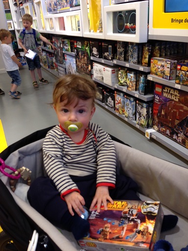 Wie auch immer, also mir ist jetzt erst so wirklich bewusst geworden, dass es überall soviel Neues gibt, was ich noch nicht kenne! Aber hey, wie sollte ich das auch mitkriegen, wenn man mich immer nur liegend mit dem Kinderwagen durch die Gegend schiebt und ich praktisch nur die Chance hab die Decke anzustarren? Nein, nein, nicht dass es an der Decke oder am Himmel nichts zu entdecken gäbe, aber mal unter uns, links und rechts ist schon wesentlich mehr los. Ergo habe ich beschlossen, ich will nicht mehr nur liegend durch die Welt gefahren werden. Na gut, im Spielzeugladen hat es mich dann so geflashed, da musste ich mich doch danach erstmal wieder hinlegen - bohhhhhh alles so bunt und ich will alles haben!!